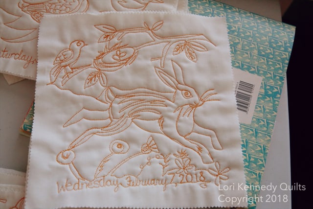 Do you remember several weeks ago, I was working on a daily challenge, copying a page from a book? I created several small quilt sandwiches for that project.