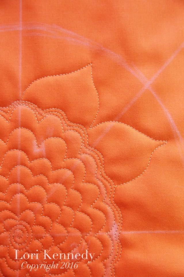 And we’re going to “POP” the petals even more by adding dense quilting motifs around the outer edge…