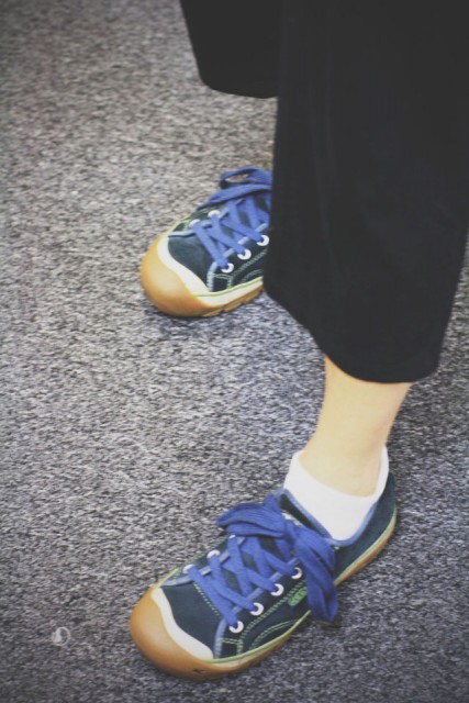Lately, my shoes should tell the world that my feet hurt–I’m recovering from a nasty bout of plantar fasciitis and can mostly be seen wearing gym shoes. I hope no one judges me for wearing gym shoes with skirts, but I’m afraid they do…