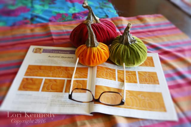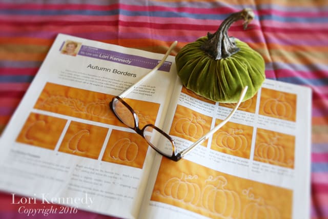 Be sure to check out American Quilter Magazine on news stands now. (or subscribe HERE) American Quilter has a new editor, Ann Hammel–(Congratulations, Ann!)–and is even better than ever! There are several quilt patterns, a great article about Kaffe Fassett (rhymes with Safe Asset), a pattern and article, Quilt Class Etiquette by the lovely, Kimberly Einmo and The Pumpkin and Oak Leaf border–step-by-step tutorial by yours truly.