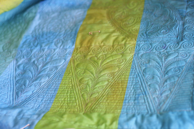 When I do these doodle quilts, I usually don’t let the stripes dictate the pattern–it gives the quilt an unexpected look.
